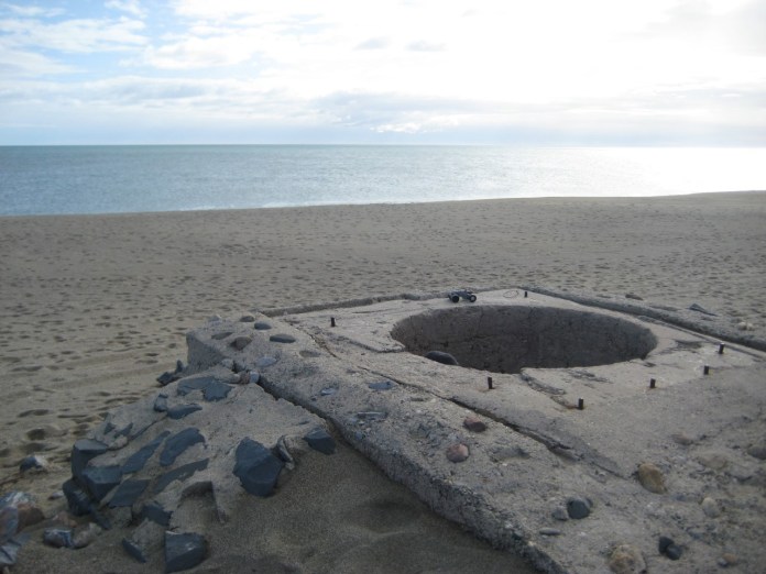 anti-tank wall built across the sand dunes, 100 yards inland.